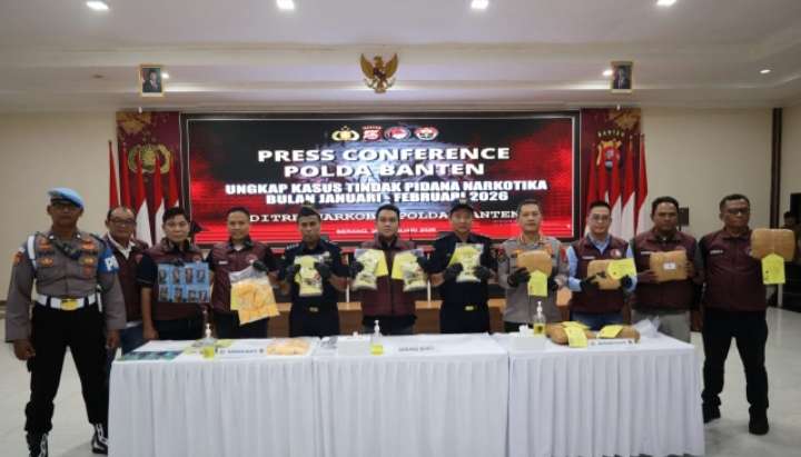 MHK | Serang – Direktorat Reserse Narkoba (Ditresnarkoba) Polda Banten menggelar press conference terkait pengungkapan tindak pidana narkotika periode Januari hingga Februari 2026, bertempat di Aula Serbaguna Polda Banten pada Kamis (26/02/2026).