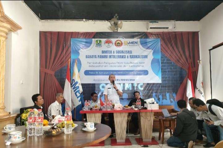 MHKNEWS, Kota Bekasi —- Forum Kewaspadaan Dini Masyarakat (FKDM) Kota Bekasi menggelar kegiatan bimbingan teknis (bimtek) dan sosialisasi bahaya paham intoleransi serta radikalisme di Studio AsMEN, Jalan Puncak Cikunir, Jakasampurna, Bekasi Barat, Kota Bekasi. Kegiatan ini diikuti oleh jajaran pengurus FKDM tingkat kota dan kecamatan, serta melibatkan unsur pemerintah dan aparat keamanan.