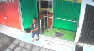 Dalam rekaman CCTV yang beredar di kalangan warga, terlihat seorang pria berjalan di depan kios dengan gerak-gerik mencurigakan. Pria tersebut mengenakan kaos berwarna gelap, celana pendek biru, serta sandal, dengan rambut pendek dan postur tubuh sedang.